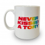 White mug with our famous "Never Kissed a Tory" slogan in red. Size: 93 x 80mm.